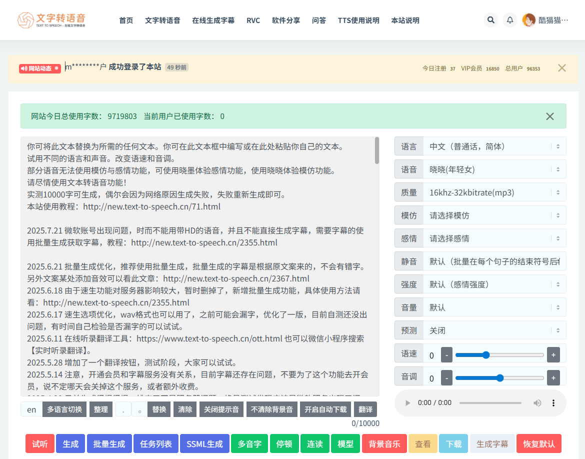 需要试用,可访问此站 https://www.text-to-speech.cn 每日免费2000字。